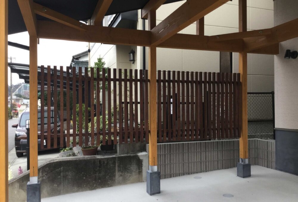 お隣様との軽い目隠し、デザイン性、ご主人様のセンスもあり、スタイリッシュにまとまりました。