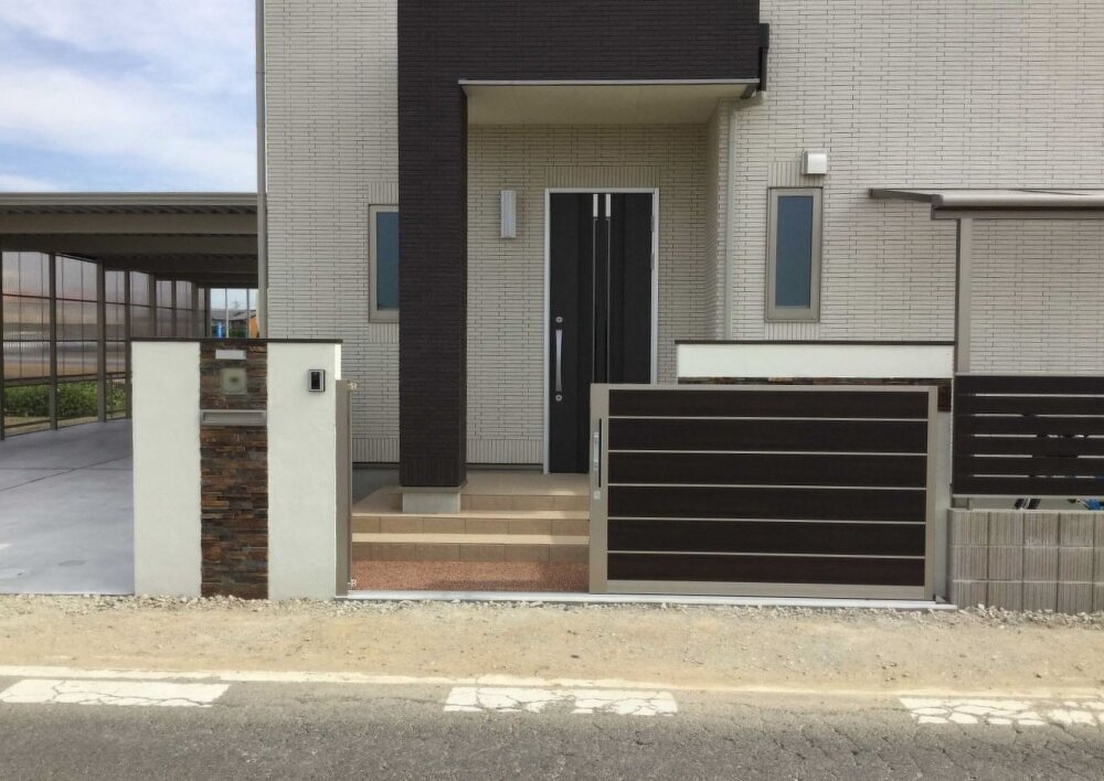 玄関と道路の間にあまりスペースが無い場合でも、省スペースで門扉を付けることができます。